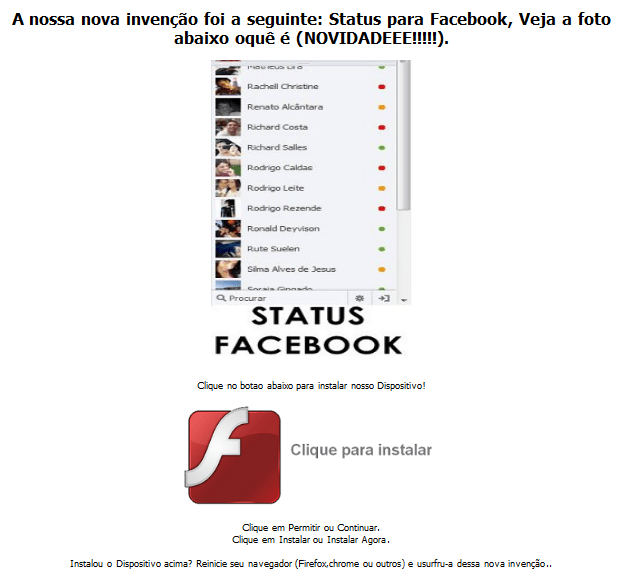 Criminosos tentam enganar usuários com a promessa de adicionar "visualização de status no chat do Facebook". A página em questão distribui uma extensão que realiza spam. (Foto: Reprodução)