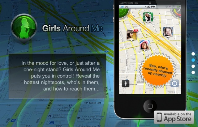 O aplicativo Girls Around Me para usuários iPhone, que tinha como objetivo encontrar “garotas próximas”, foi retirado da iOS App Store no último sábado (31) pelo seu desenvolvedor depois de questões de privacidade foram lenvatadas. O app utilizava dados de redes sociais para encontrar as mulheres.