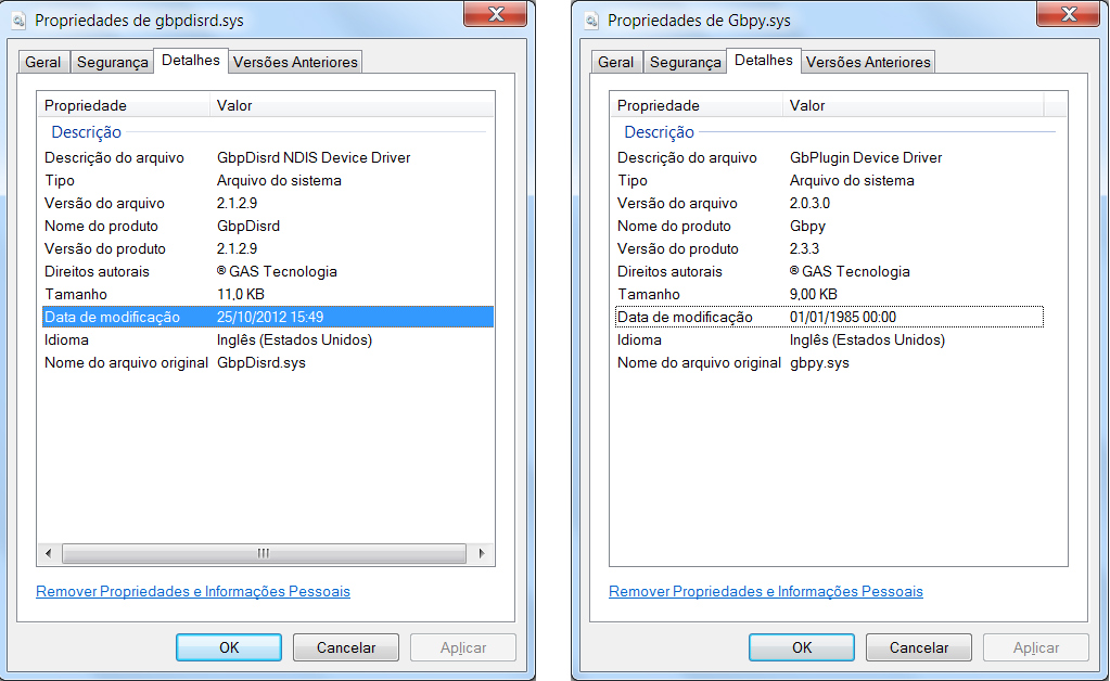 O rootkit analisado pelo ARIS é interessante por alguns motivos: para burlar a detecção dos programas antivírus, o driver malicioso se apresenta como um componente do GBPlugin, plugin bancário distribuído pelas GAS Tecnologia e instalado em mais de 30 milhões de computadores. O driver malicioso forjava os dados na descrição do arquivo, usando nomes parecidos aos arquivos legítimos do plugin.
