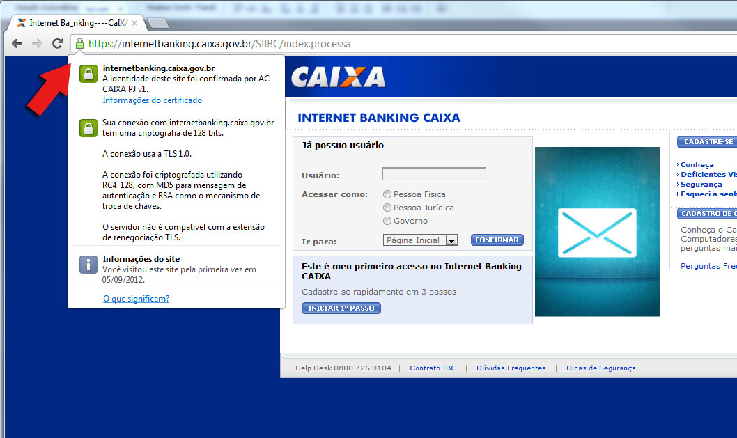 Observem agora a verdadeira página do Internet Banking da Caixa: