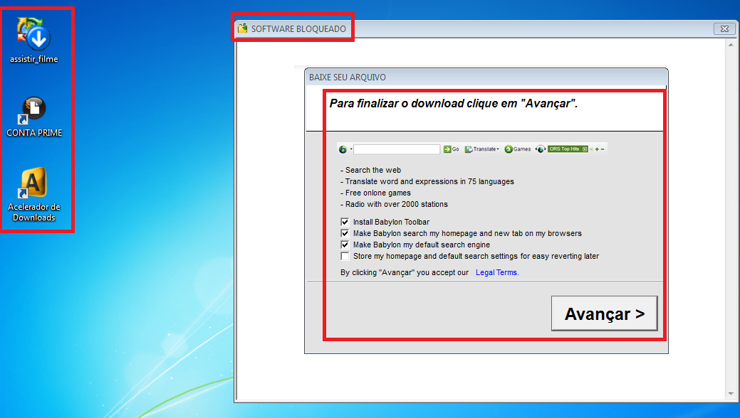Software exige instalação da Babylon Toolbar para prosseguir e coloca ícones na área de trabalho.