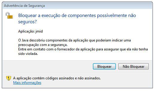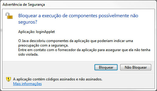 … assim permanece o problema, tanto os bancos quanto a oracle transferem ao cliente (que na maioria das vezes não tem a mínima idéia do que se trata) a responsabilidade de decidir ou não executar a aplicação. Assim permanecemos no impasse, ou aceitamos e corremos o risco para poder acessar o banco, ou bloqueamos mas somos impedidos de realizar as transações via internet.