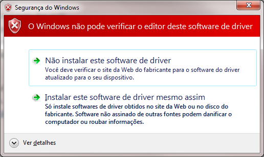 Recentemente instalei um driver para minha impressora. Eis o aviso do Windows: