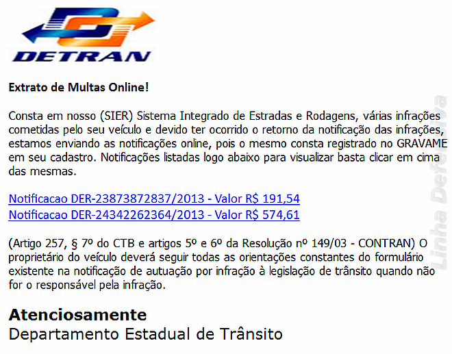 A Linha Defensiva observou que a praga foi distribuída através de um e-mail falso que tenta se passar por um comunicado do Detran.