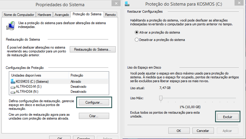 Por isso, a primeira atitude a ser tomada é a remoção dos pontos de restauração anteriores, o que removerá qualquer vírus ali armazenado por acidente.